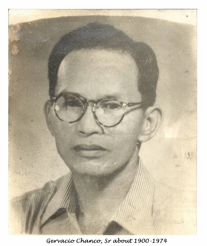 Felicitas Gutierrez has always lived in Manila (born & raised...devout catholic...25% spanish). She was an only child but her dad died when she was 4 or 5 yrs old (I think during the war). Her mom re-married and my mom was adopted by her great-aunt who didn't have a child. They had a small canteen and a boarding house. Arsenio Parenas Chanco came to Manila to go to college (hoping to be an electrical engineer. Stayed in Mom's boarding house. Arsenio brought his younger brother to Manila. He couldn't afford college so he switched to evening vocational school (master electrician) and worked during the day to support both of them. Arsenio Parenas Chanco and Felicitas Gutierrez were married in 1959.