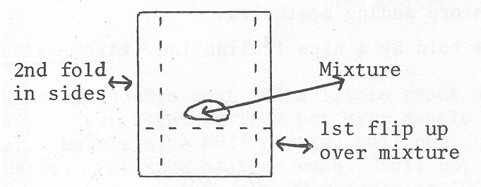 Place a heaping tbsp of mixture in lower center, flip end up, second fold sides in then roll.
